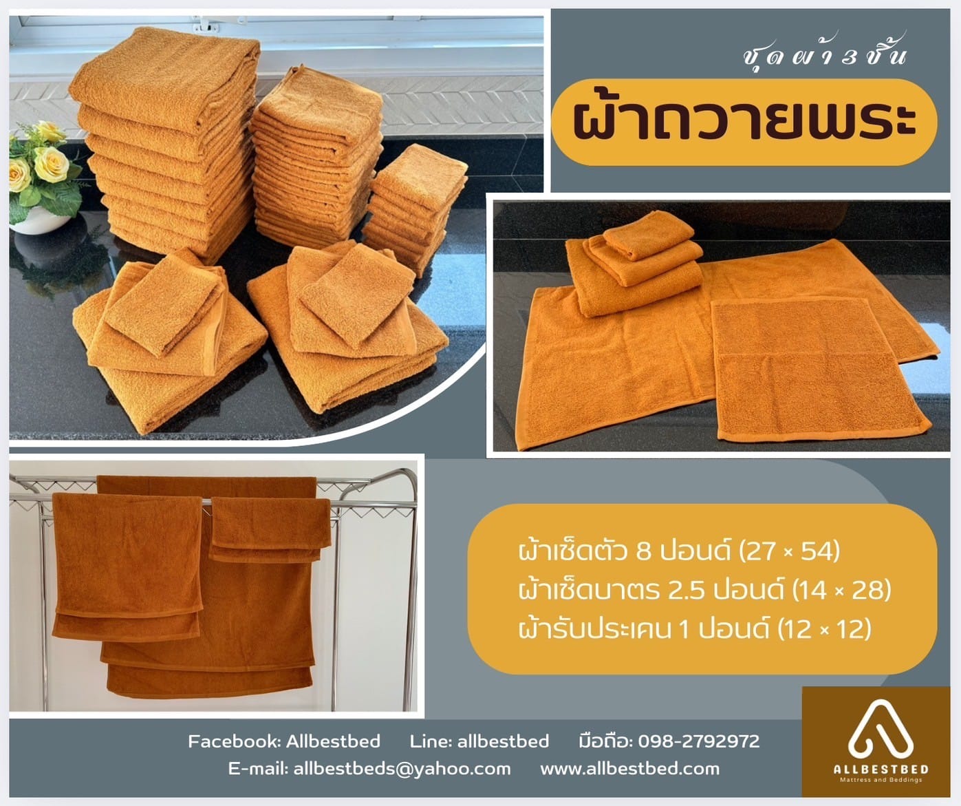 ผ้าเช็ดตัว ขนาด 27*54 นิ้ว น้ำหนัก 8 ปอนด์