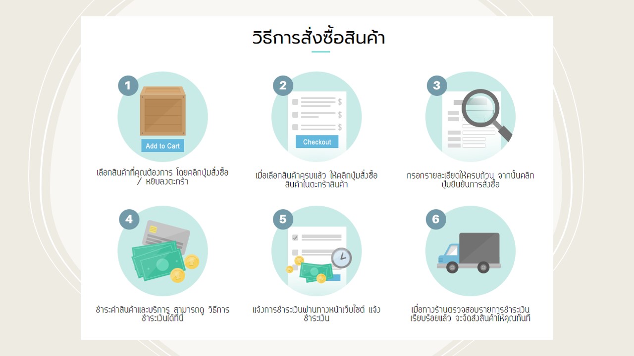 1. คลิกเลือกสินค้าที่ต้องการ-ตรวจสอบรายการสั่งซื้อในตะกร้า และทำตามขั้นตอนในระบบ